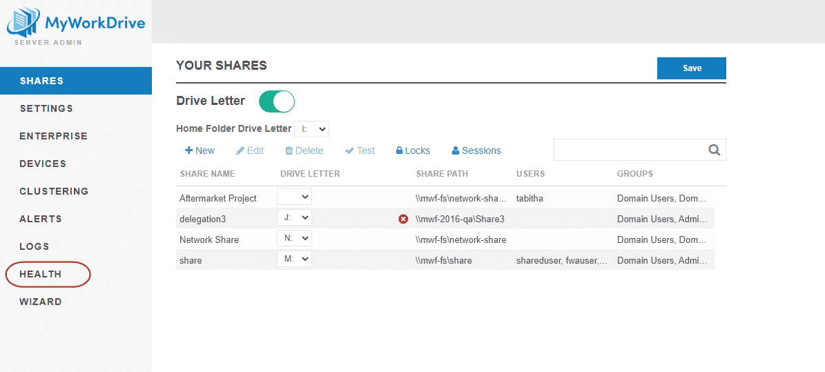 To access the Health dashboard, login to your MyWorkDrive server and click on the Health Dashboard tab.