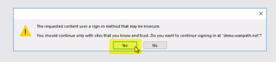 This is a one-time process; once the server is trusted, the user will only get the login when the session times out.