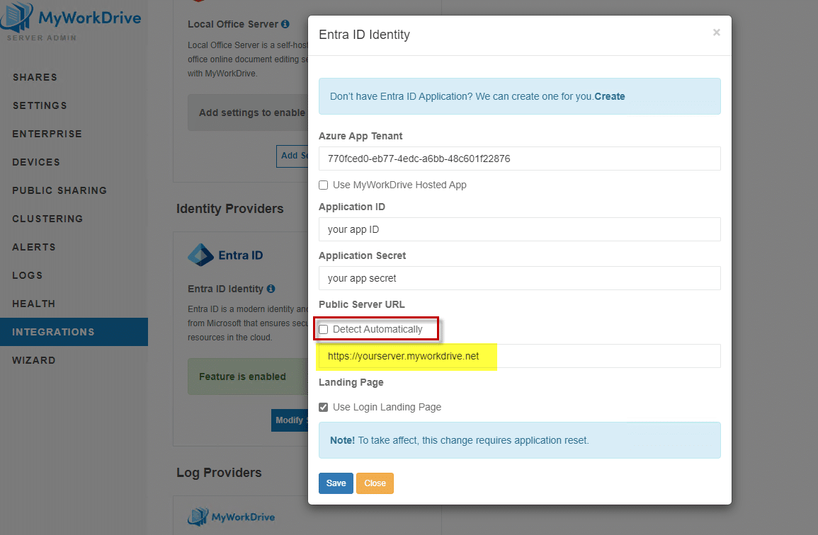Also worth noting. If you are using Entra ID Identity and selected the "Use MyWorkDrive Hosted App" for Entra ID Identity during the setup wizard, you must change to your own app in your own Azure Tenant when you move from a Cloud Web Connector URL to your own hostname.