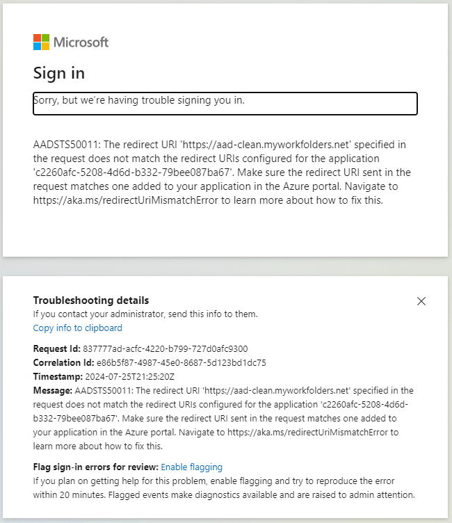 Microsoft Entra ID Sign-in Error: the Redirect URI specified does not match