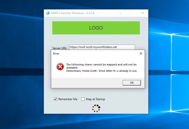 - Client warns if a drive letter is already in use and does not map.