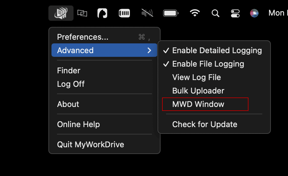 From version 6.4.1.680, the MWD Window is the default view when running the client or when clicking on the MyWorkDrive shortcut in Favorites. It runs as its own application and will show up on the dock. All users are encouraged to upgrade to 6.4.1.680 and to use the MWD Window.