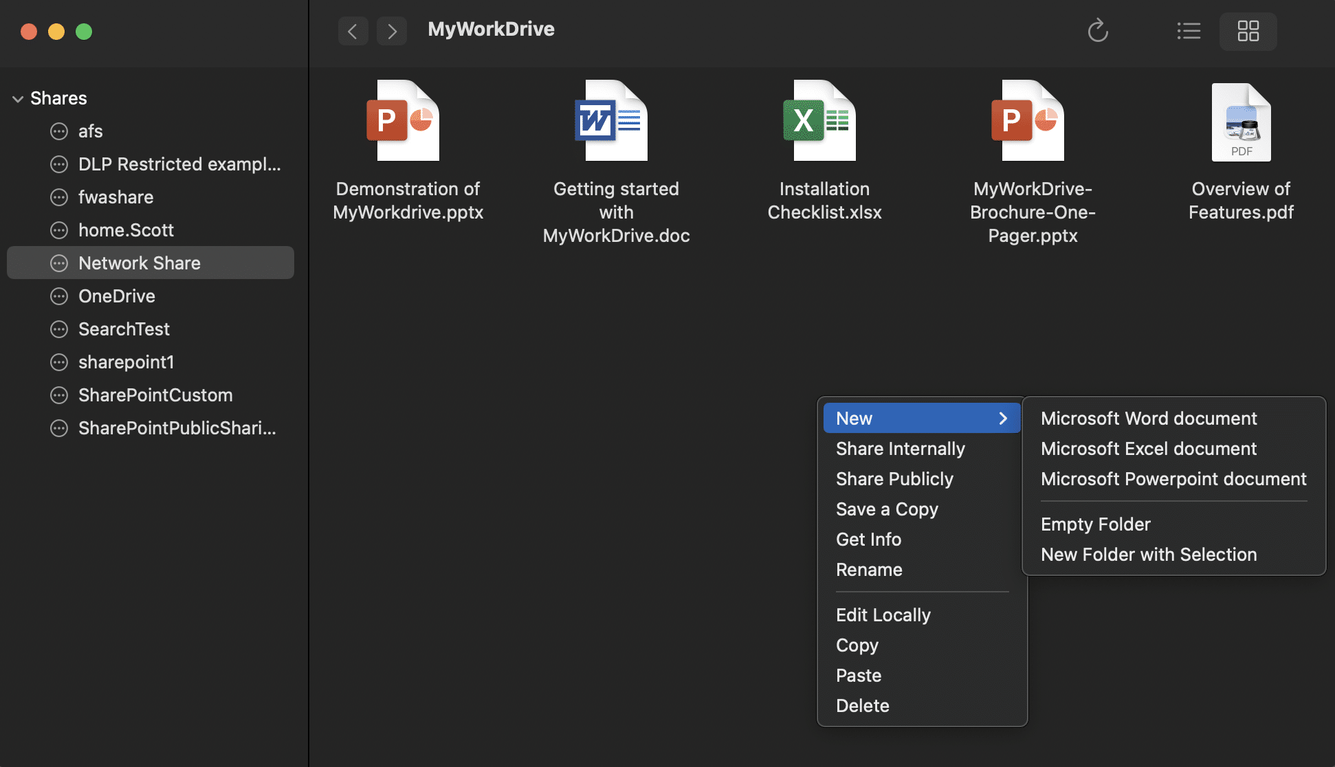 And MyWorkDrive Functionality, including Sharing and Creating new office files.