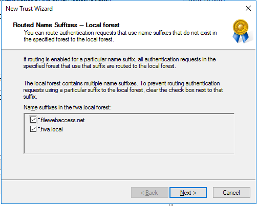 Trusted Account Domain: “FWA” FWA.local, filewebaccess.net