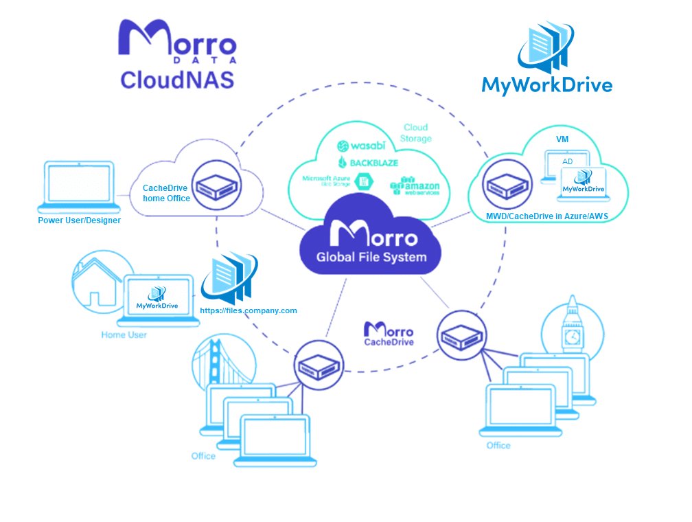 When used together, MyWorkDrive and Morro Data provide 100% remote accessibility of files from any Web Browser, Mobile, Mapped Drive or local NAS with Gigabit performance.