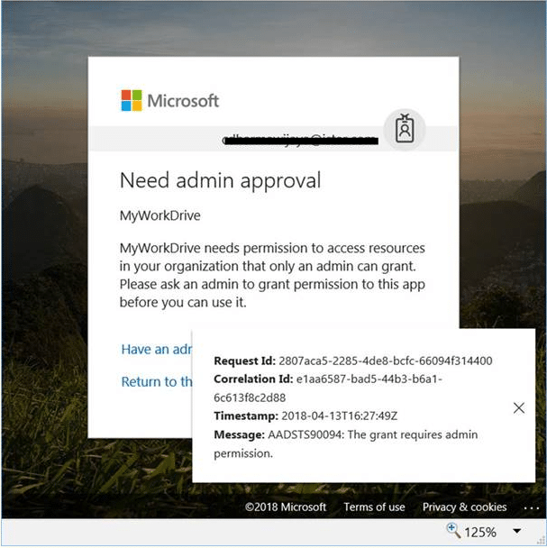 Alternatively, grant MyWorkDrive OneDrive permissions on behalf of your organization.