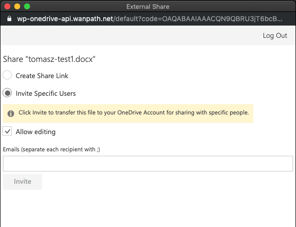 Instruct your users that they are to use the "Invite Specific Users" option in the share panel when using OneDrive sharing.