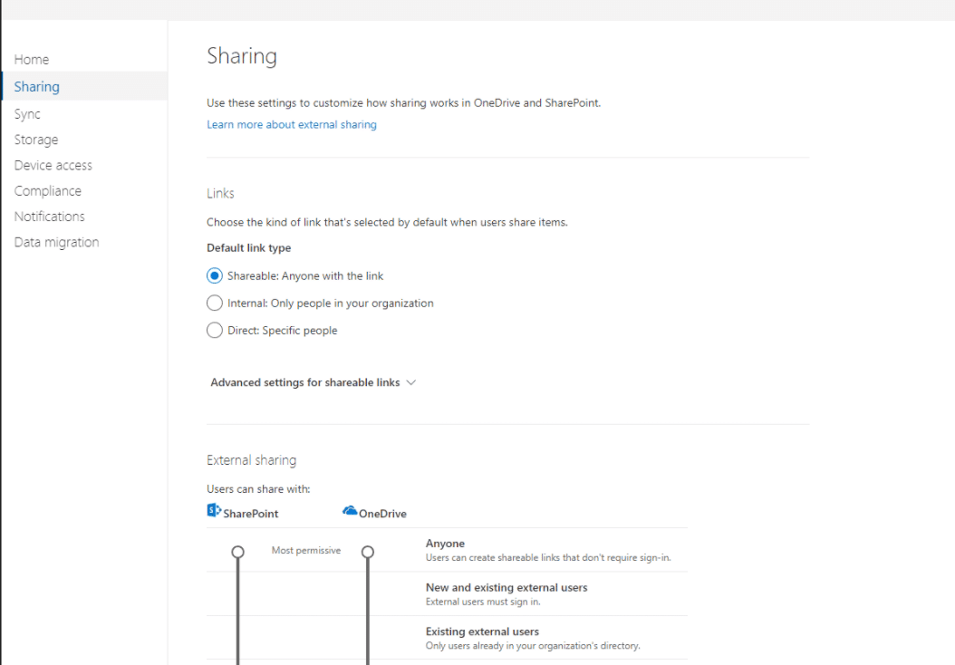 If you have chosen the Internal or Direct option, a shareable link will not be produced by the OneDrive share. You have two options to alter this.
