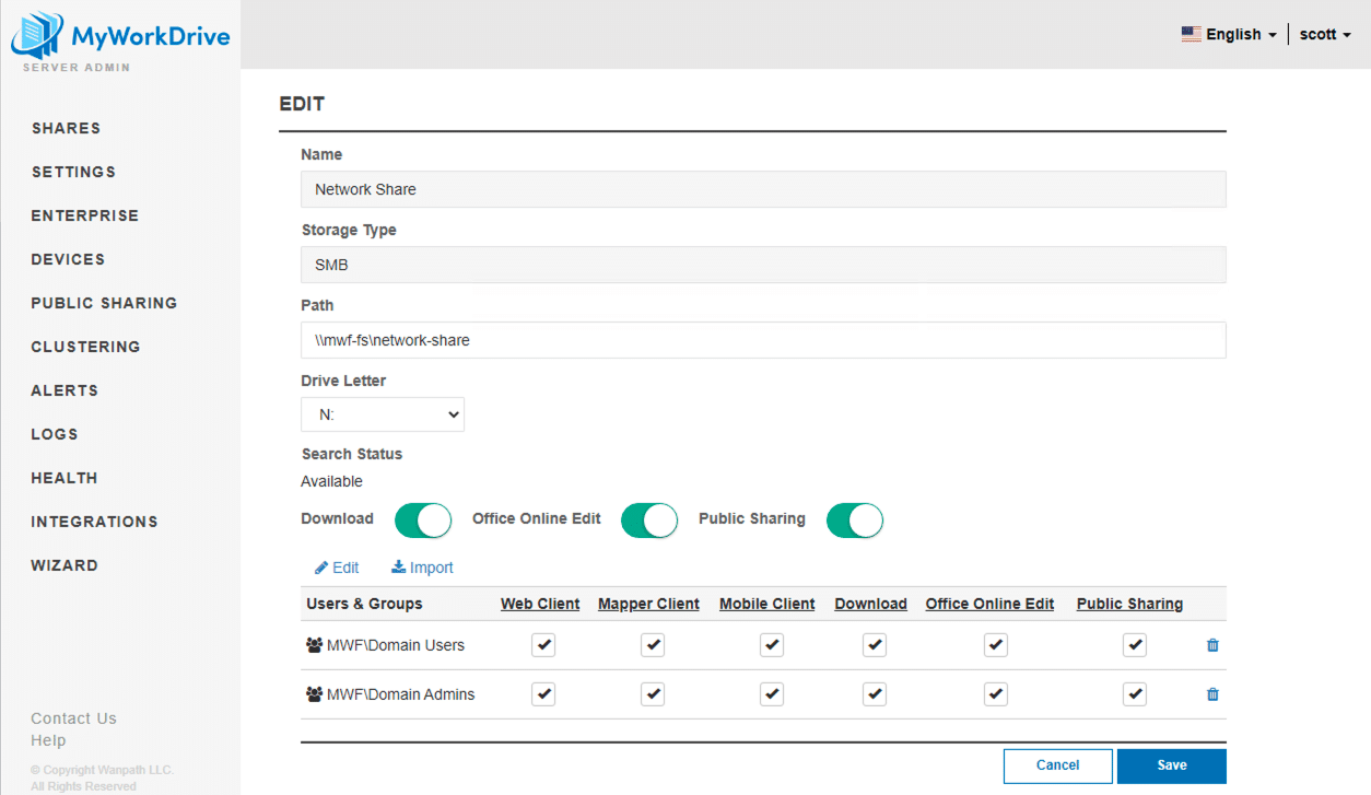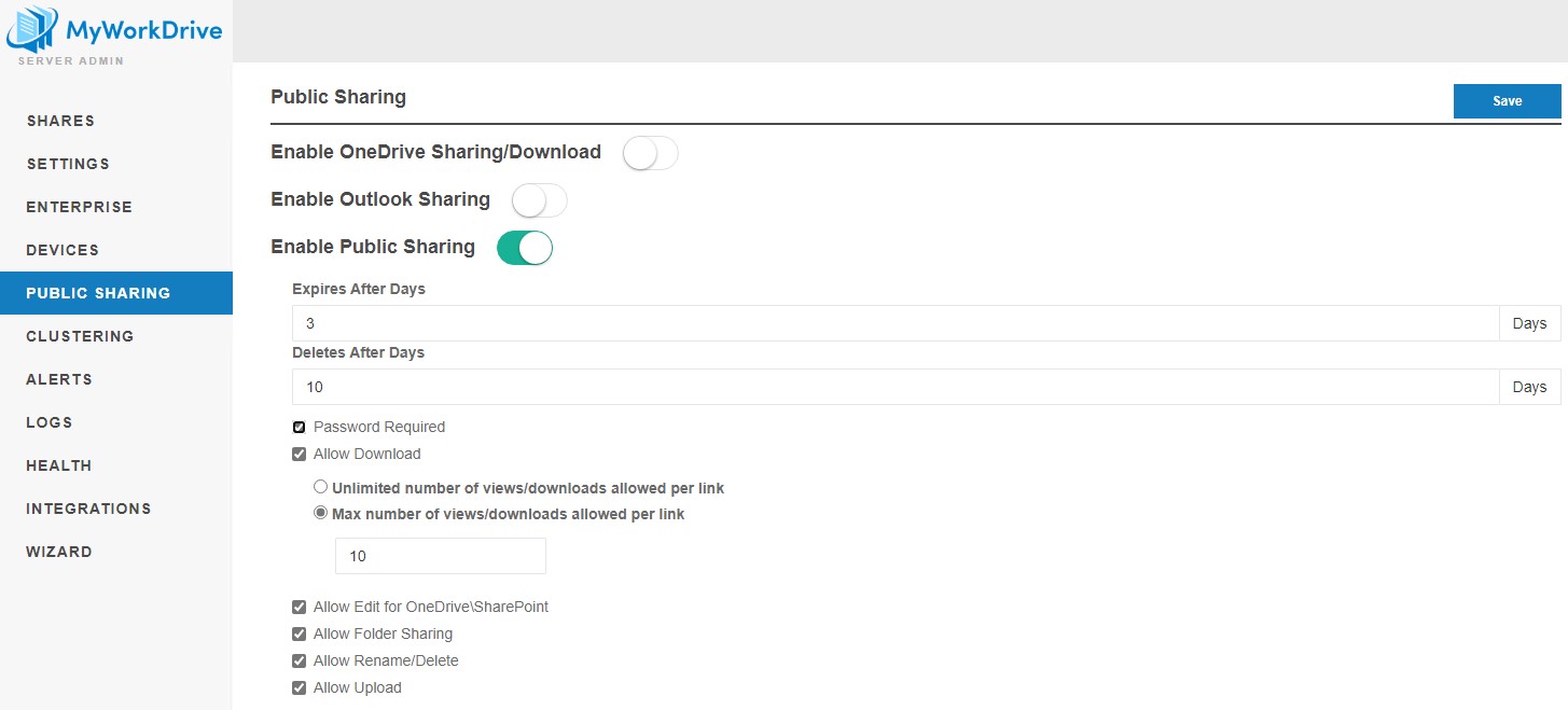 MyWorkDrive Public Sharing Administration