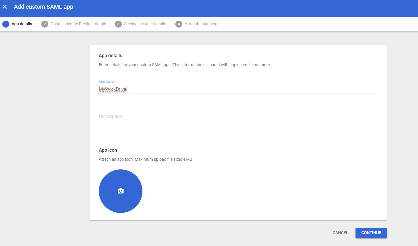 Note the Google Identity Provider Details screen offers a Metadata download. This is not used with MyWorkDrive.