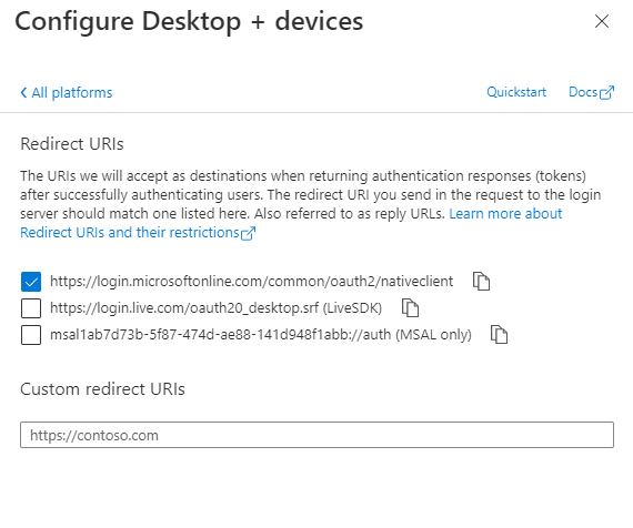 - Restricting login to the application to only users with accounts in the internal organization (custom app registrations only).