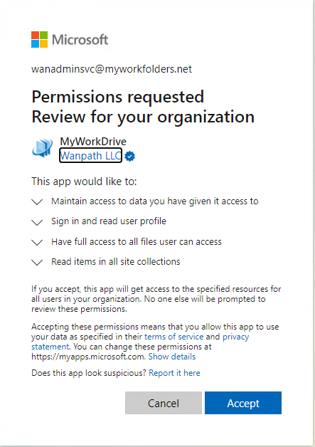 As an alternative to our shared MyWorkDrive Azure AD App Registration, MyWorkDrive supports creating a customer Azure AD app.