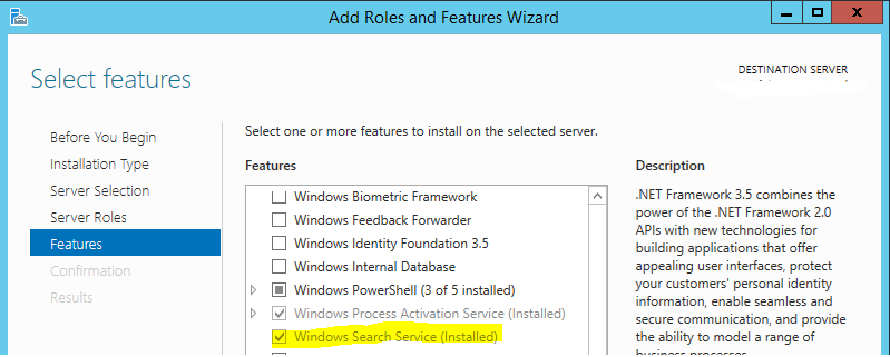 To install the Windows Search Service, enable the feature using Server Manager on all of the file servers you wish to index _and the MyWorkDrive server_: