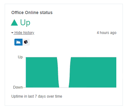 The Health dashboard can also be used to troubleshoot past or intermittent issues as well, showing you past outages for services in the graphs. Wondering why a user couldn't edit a document last week? In this case, Office Online was not available.