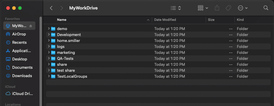 MyWorkDrive is the same on Intel and M1 processors. After logging you will have a mounted MyWorkDrive volume with the shares you have access to.