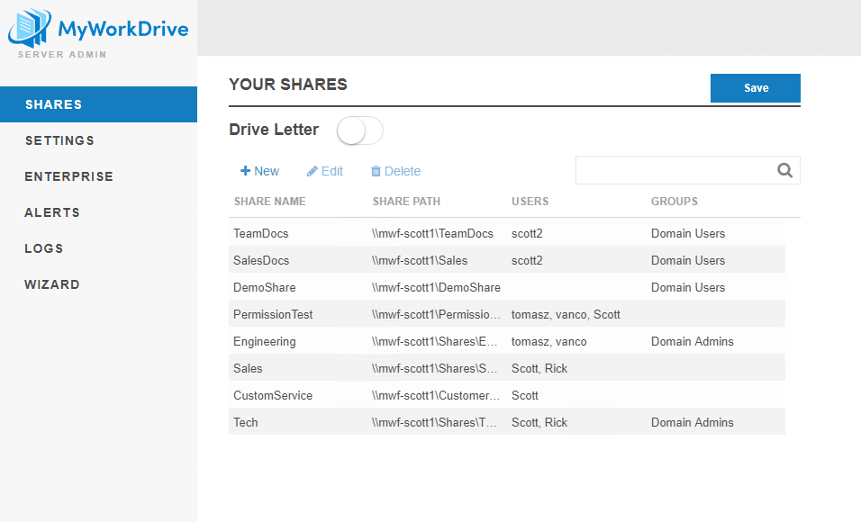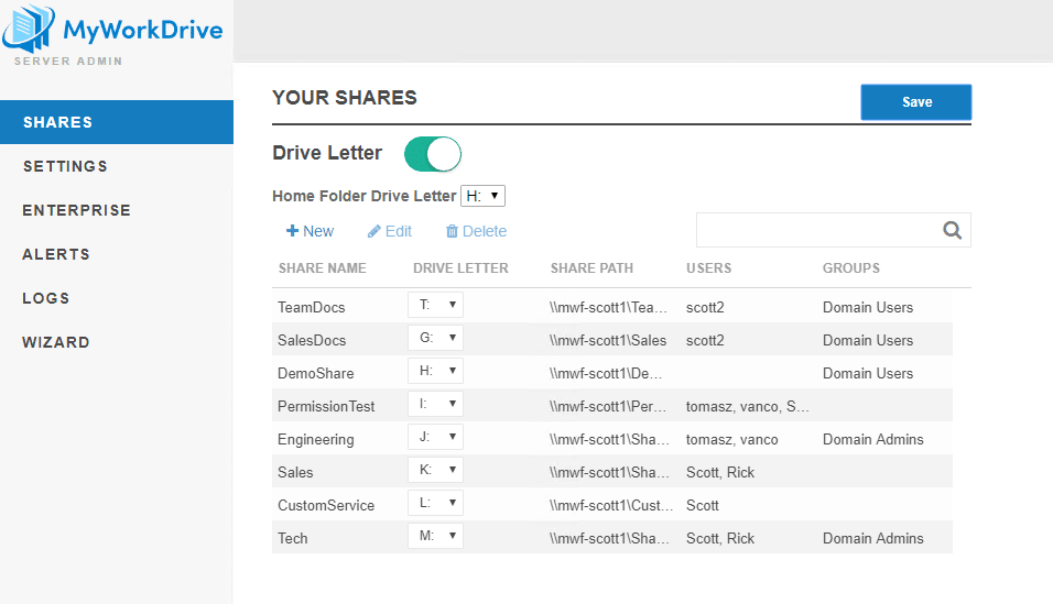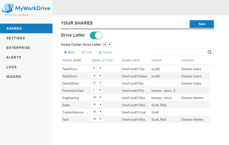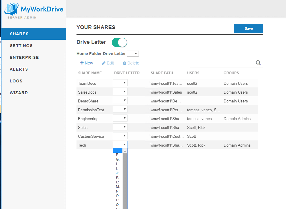 MyWorkDrive server 5.3 and above features the ability to define and push drive letters from the server.