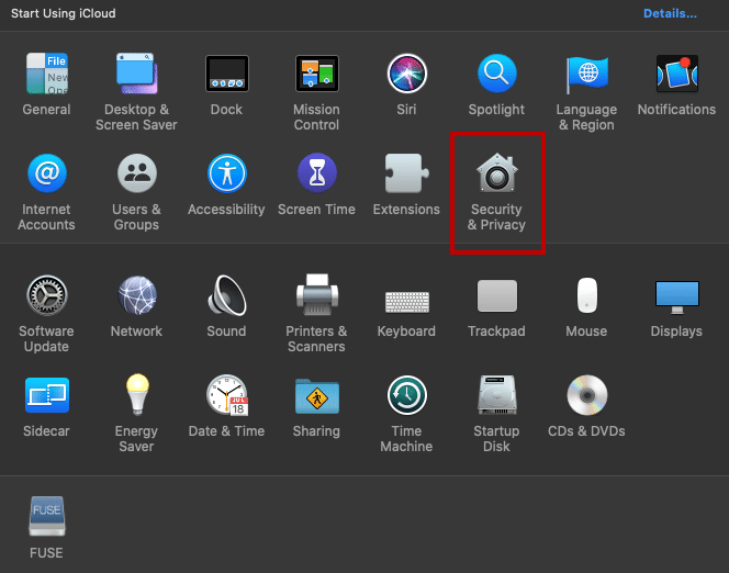 Click on Security & Privacy.