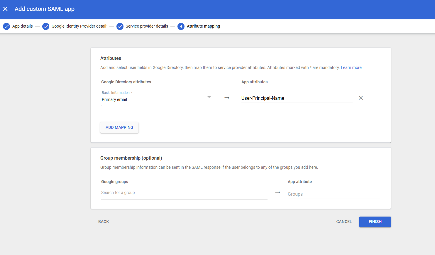 3) The Name ID Format will be EMAIL. It is also referred to as Primary Email. It will be mapped to User-Principal-Name
