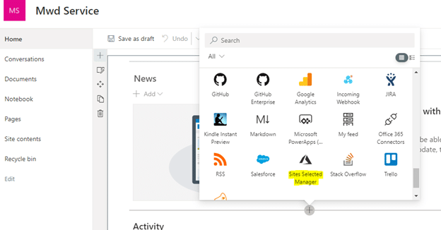 Upload our SharePoint Site Selected Manager Web Part to your SharePoint site. It can be downloaded here from our website.