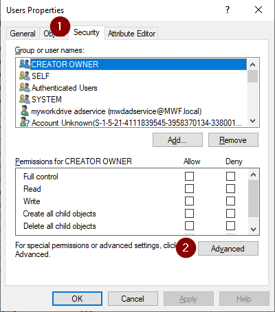 We recommend that you do not disable the Pre-Windows 2000 group. However, if you must disable this group for any reason, grant the Read Remote Access Information permission to the Computer Account for the Windows Server(s) MyWorkDrive is installed on in AD for the relevant users/user groups/OUs.