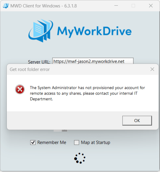 Error: The MyWorkDrive desktop client is missing share(s).