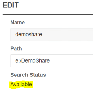 Once the services are enabled, search is enabled, and indexing is complete, the indexing option in MyWorkDrive will then show as enabled when editing each share in the admin panel. Note for large file servers, this may take several hours.